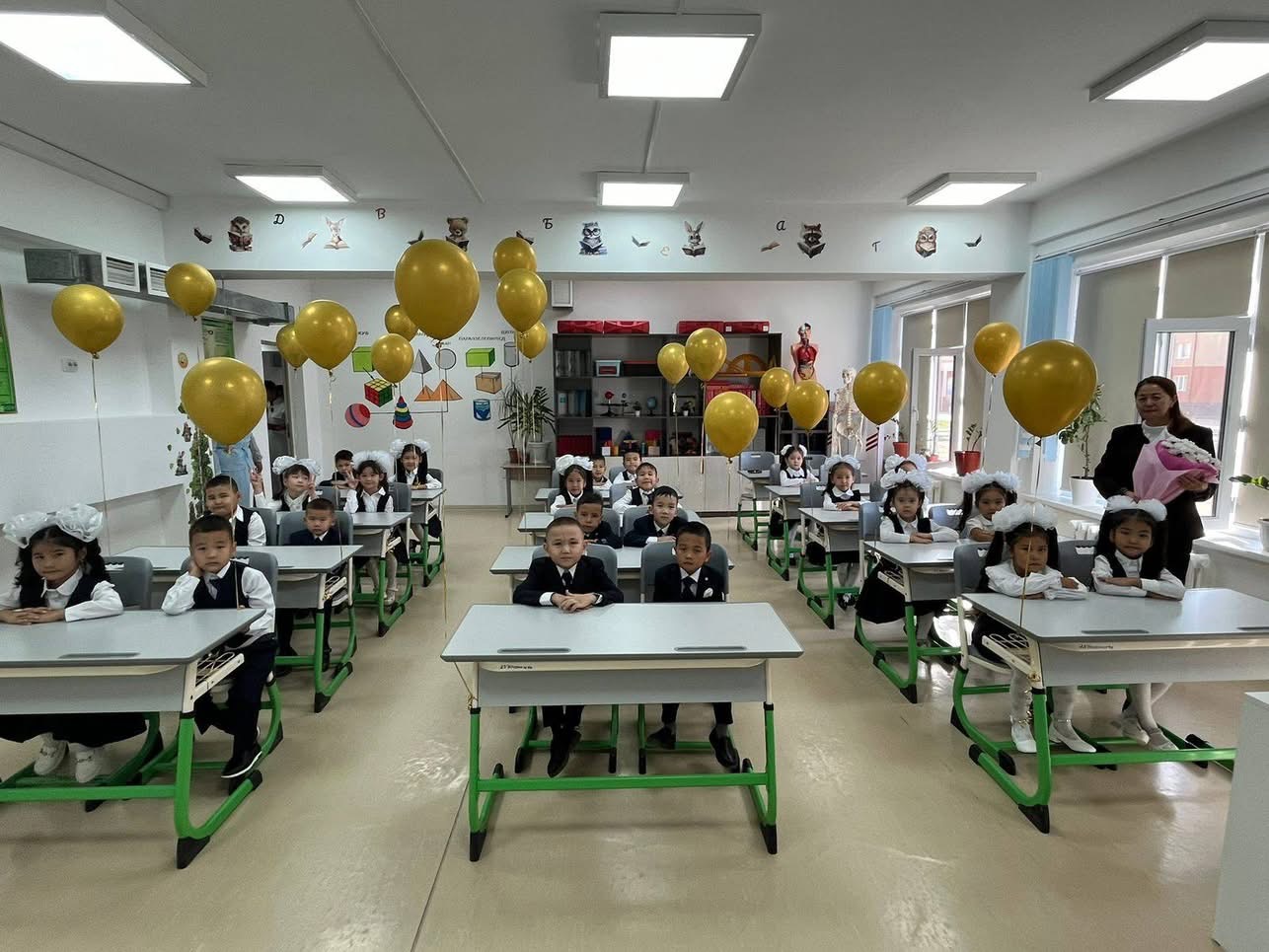 Жиын қонағы, аудандық білім бөлімінің әдіскері Хасан Гүлнәр Хасанқызы және ата- аналар атынан сөз алған Жусупова Гульбаршын Саламатовна мектеп табалдырығын алғаш аттаған 1-сынып оқушыларына, ұстаздарға, ата-аналарға құттықтау тілегін білдірді.